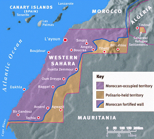 Its independence, however, was immediately challenged by both Mauritania and Morocco, igniting a 16-year war for independence that stopped after Mauritania relinquished its claims, and a ceasefire was achieved with Morocco in 1991. By this time, Morocco had taken control of 80 percent of Western Sahara, which it consolidated through the construction of a 1700-mile fortified berm (a sand wall, or “the wall of shame and humiliation” in Sahrawi parlance). Today, at least 90,000 Sahrawi refugees live across the Algerian border in camps in Tindouf, which forms the base of the Polisario and its military wing, the Sahrawi People’s Liberation Army (SPLA).